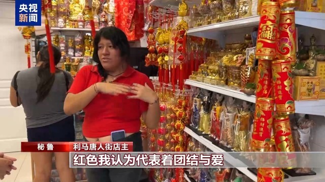秘鲁利马唐人街店主:我觉得金色和红色可以用来描述春节,这是我看到的最具代表性的颜色。因为金色象征着欢乐,也代表着好运与财富,我认为红色代表着团结与爱。