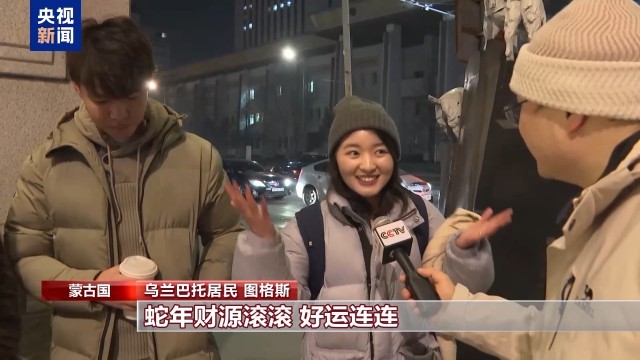 蒙古国乌兰巴托居民 图格斯:我的中国朋友们告诉我,在中国,蛇象征着财富和好运。所以祝中国的朋友们,蛇年财源滚滚、好运连连。