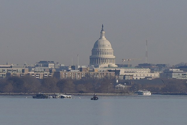 1月29日晚,美国一架客机在首都华盛顿与一架军方直升机相撞,两机发生爆炸后坠河,无人生还,共有67人遇难。(央视记者 许骁)
