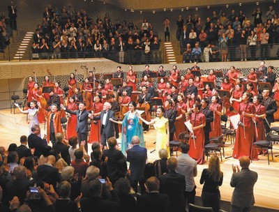 第二十五届“中国春节民族音乐会”在德国汉堡举行。这是演出最后,全体观众起立向中国艺术家鼓掌致敬。 本报记者 刘仲华 摄