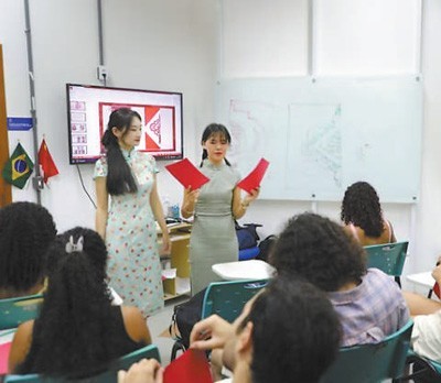 日前,巴西弗鲁米嫩塞联邦大学孔子课堂在校园草坪上举办了一场别具特色的春节庆祝活动——“春节序曲民俗里的中国年”,为当地民众带来一场充满年味的文化体验。