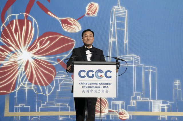 当地时间2月11日,中国驻美国大使谢锋在美国中国总商会成立二十周年庆典上发表主旨演讲。