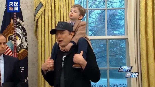 当地时间2月11日,“政府效率部”负责人马斯克背着小儿子X,与美国总统特朗普一起出现在白宫椭圆形办公室。