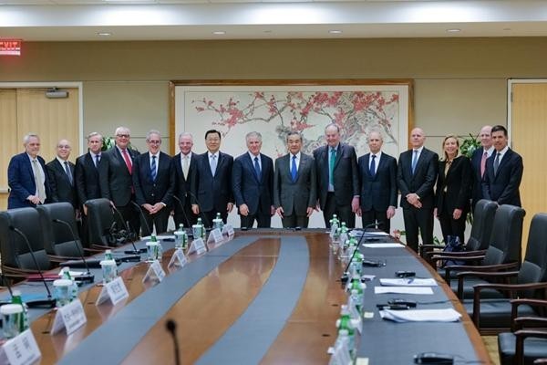 2月18日,美国纽约,中共中央政治局委员、外交部长王毅在纽约主持联合国安理会高级别会议期间同美国各界人士举行座谈。图片来自外交部">