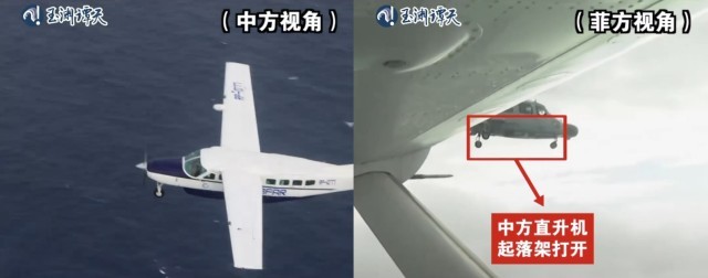 军事专家张军社对画面进行了细致分析,从飞行航迹上来看,它想查明航道口附近中国有什么船只。菲方C-208型机是政府公务机,它不是一个单纯的民用飞机,是固定翼飞机。它的吨位比我们的直升机要大,直升机的螺旋桨如果碰到它的固定翼,螺旋桨就很危险,直升机就有可能坠入海中。