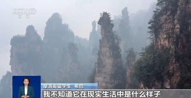摩洛哥留学生 希巴:看完电影后我想去张家界,我不知道它在现实生活中是什么样子,但它看起来就像天堂,整个水域,山脉,一切都非常棒,美丽。