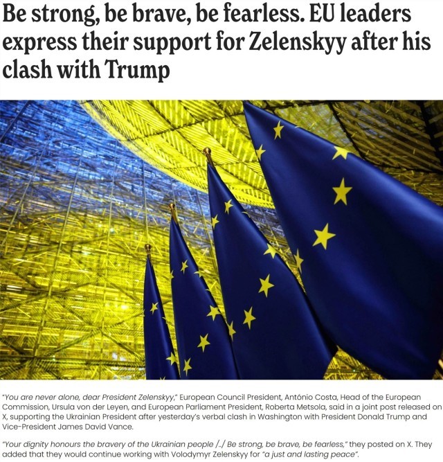 对于美乌这场不欢而散的会谈,欧洲多国选择站在乌克兰一边。