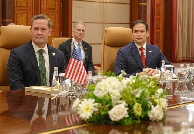 △美国务卿鲁比奥(左)美总统国家安全事务助理华尔兹(右)