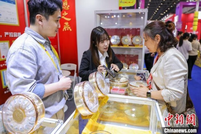 4月14日,在第五届中国国际消费品博览会上,马来西亚燕窝吸引参观者驻足挑选。中新社记者 骆云飞 摄