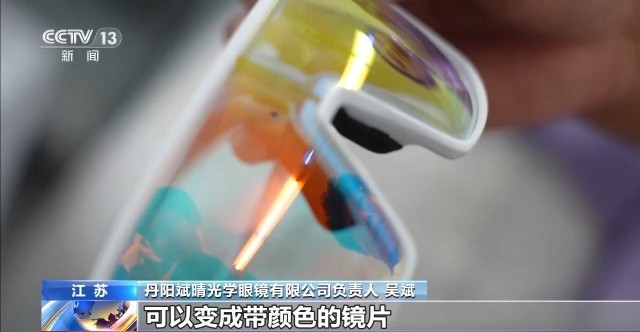 丹阳斌晴光学眼镜有限公司负责人 吴斌:这是一款能够在室外紫外线下可以变成带颜色的镜片,到了晚上骑行运动的时候它是透明色的。