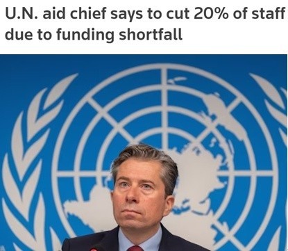 联合国人道主义事务协调厅近日发表公开信说,由于资金遭遇“残酷削减”,尤其是美国政府大幅叫停对外援助,该机构将不得不裁撤20%、即500多名工作人员。
