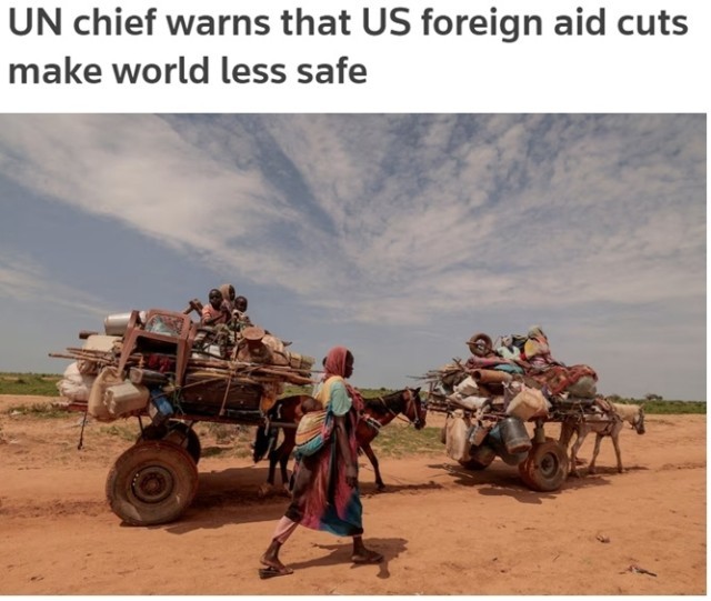 联合国秘书长古特雷斯此前曾表示,美国大幅削减对外援助无异于一场人为制造的“人道主义地震”,将对世界上最弱势群体造成严重伤害,不仅让世界更不健康、更不安全,也有损美国自身利益。
