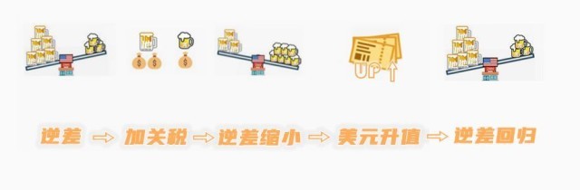 关税↑→进口↓→逆差↓→美元↑→逆差↑