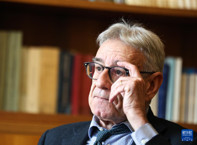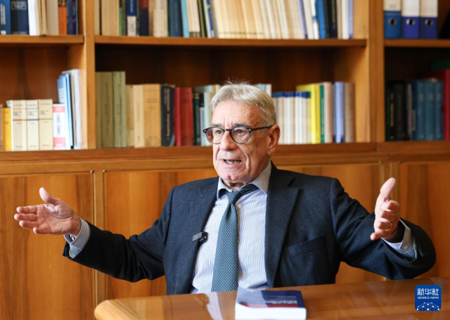 4月23日,在意大利罗马,奥利维耶罗·迪利贝托教授在办公室接受新华社记者专访。新华社记者 李京 摄