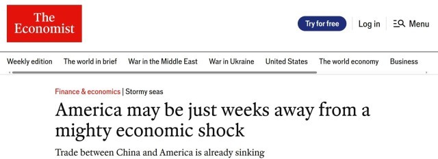 糟糕的经济表现拉响了美国经济衰退的警报。按《经济学人》的说法,美国距离巨大的经济冲击还有几周的时间。