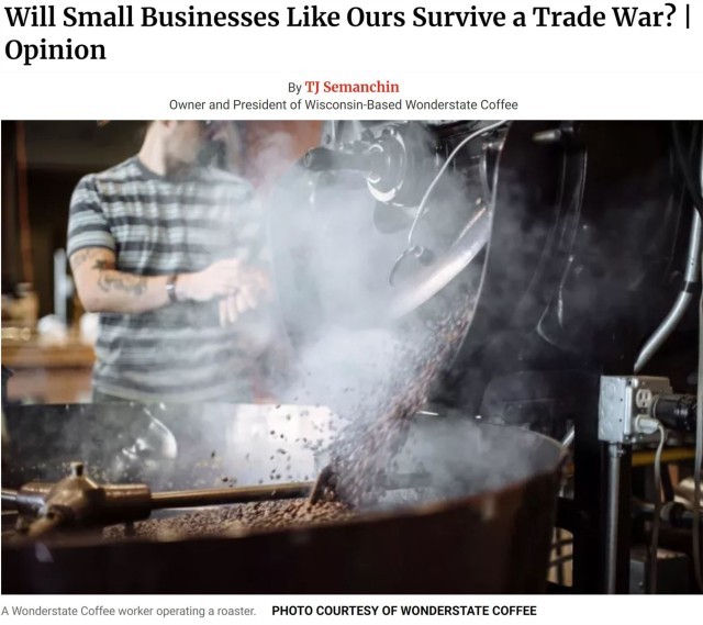 美国《新闻周刊》1日刊发了美国一家咖啡小企业经营者发出的呼声。