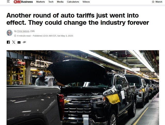 美国对关键汽车零部件加征25%关税的措施已于美国东部时间5月3日零点生效。对此,美国有线电视新闻网CNN刊文表示,此举或将永久改变美国的汽车产业。