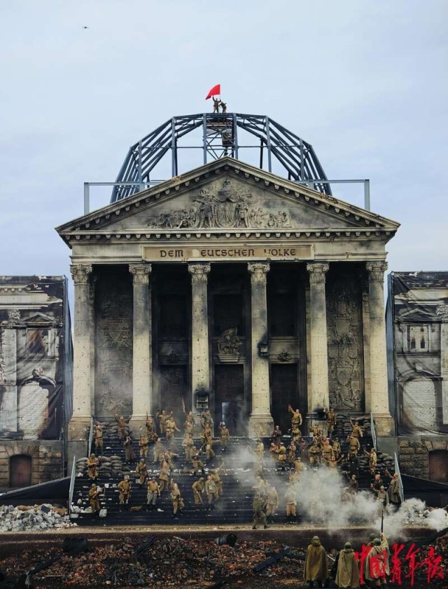 中国青年报客户端讯(中青报·中青网驻俄罗斯记者 赵祺)为纪念卫国战争胜利八十周年,沉浸式“历史重塑”话剧《胜利!国会大厦上的旗帜》自5月1日起在莫斯科电影公园(Moskino)上演。该剧由俄罗斯人民艺术家伊戈尔·乌戈尔尼科夫创作并指导,旨在带领观众重温1945年苏联军队攻占柏林国会大厦,升起胜利旗帜的历史性时刻。