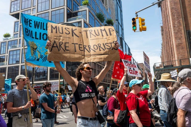 5月3日,美国纽约,许多民众走上街头抗议特朗普和马斯克。 视觉中国供图