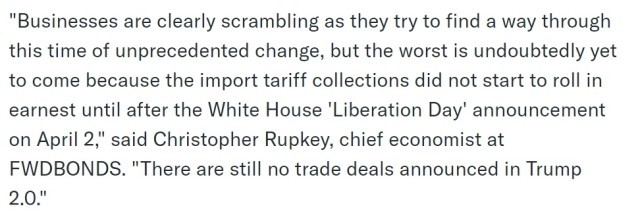 虽然经济学家预计进口热潮到5月将会消退,但他们同时警告说,由于其他国家广泛抵制美国商品和赴美旅行,进口下降的效果可能会被出口下降所抵消。
