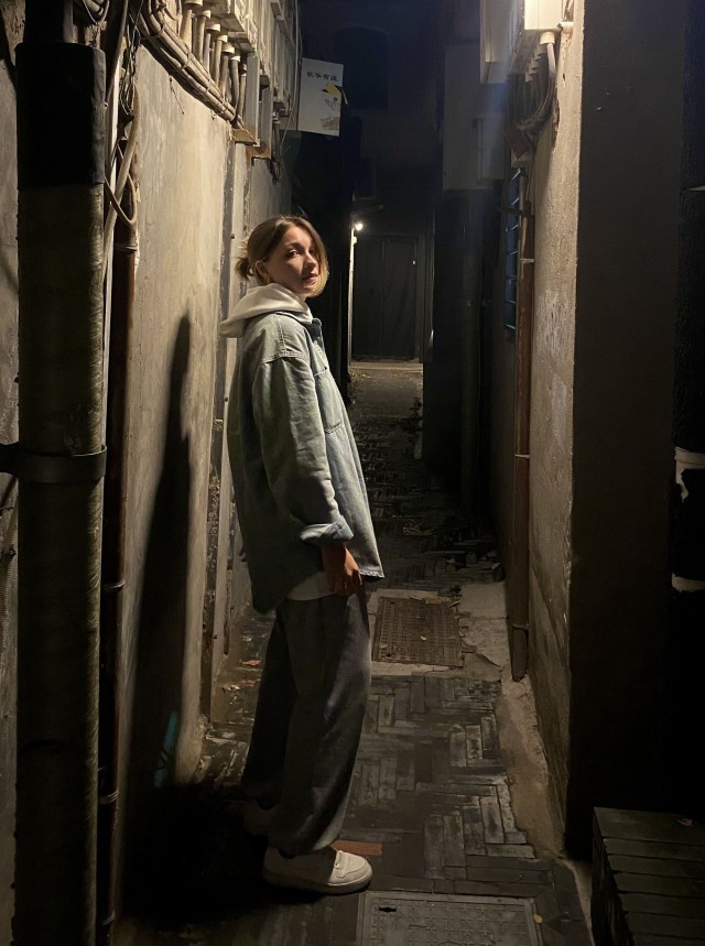 爱丽娜说她很喜欢胡同夜晚静谧的氛围