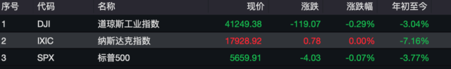 在此背景下,美国三大股指多数收跌,道琼斯工业指数跌0.29%,标普500指数跌0.07%,纳斯达克指数微涨。本周以来,标普500指数累计下跌约0.5%,纳斯达克指数跌幅约为0.3%,道琼斯工业指数则下跌近0.2%。