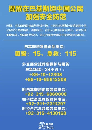 扩散周知!在印在巴中国公民必知电话