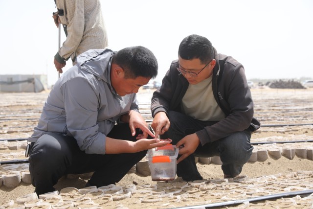 在防沙治沙作业现场,河南全林有限公司负责人李腾飞的身影频繁出现。从土地平整到拱棚育苗,他全程参与技术指导,手把手教周边群众如何育苗。在他的带动下,这一片防沙田在作业过程中,每日可为200余名周边群众提供灵活就业、增加收入的机会。