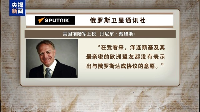 俄罗斯卫星通讯社12日援引美国前陆军上校丹尼尔·戴维斯的话表示,在他看来,泽连斯基及其最亲密的欧洲盟友都没有表示出与俄罗斯达成协议的意愿。