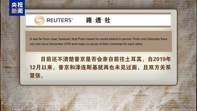 路透社11日指出,目前还不清楚普京是否会亲自前往土耳其,自2019年12月以来,普京和泽连斯基就再也未见过面,且双方关系紧张。