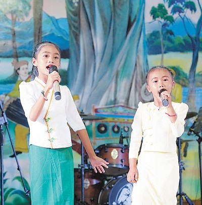 勐巴娜西乐团在云南昆明市举办的中缅文化交流周活动开幕式上演唱歌曲《一山一水胞波情》。受访者供图
