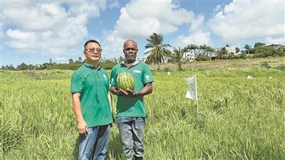 中国农业技术专家为巴巴多斯农户开展多种形式的技术培训。图为援巴巴多斯中国农业技术专家与当地农业技术工人合影。