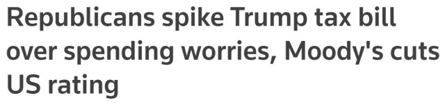 据悉,穆迪此次下调美国信用评级的直接诱因,是国会众议院共和党人最新提出的预算和税收立法草案。