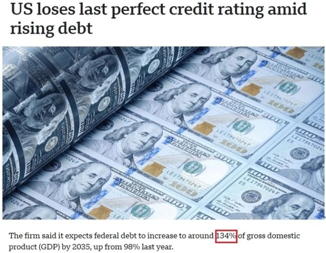 至此,美国已失去所有三大评级机构的最高信用评级。此前,标准普尔和惠誉分别在2011年和2023年将美国主权信用评级调至Aaa以下。