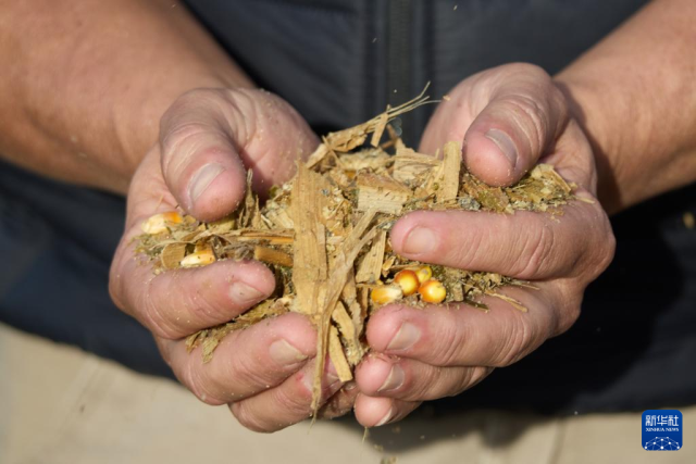 这是5月14日在阿根廷潘帕斯草原莱因迪亚纳牧场拍摄的饲料。新华社记者 孟鼎博 摄