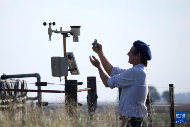 5月14日,埃塞基耶尔·内尔维在阿根廷潘帕斯草原莱因迪亚纳牧场观察风向。新华社记者 孟鼎博 摄