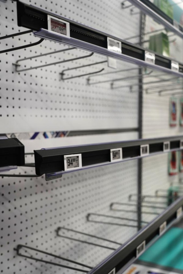 除了价格上涨,这家门店的部分玩具、自行车和家用电器货架空空荡荡,只剩还没有撤下的价签。