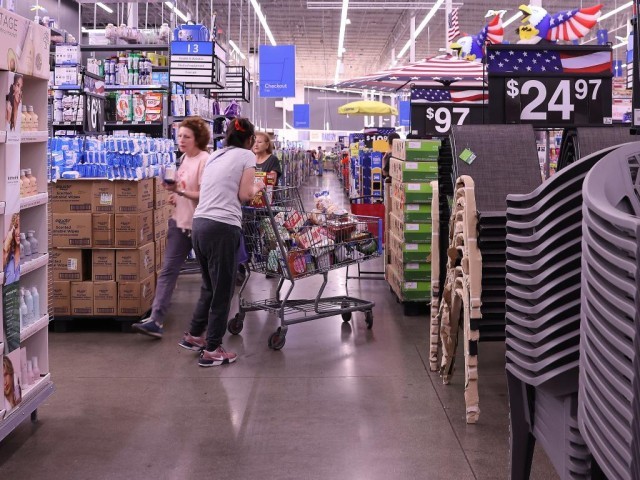 5月20日,顾客在美国加利福尼亚州洛杉矶县一家沃尔玛商店内采购商品。新华社发(邱晨摄)