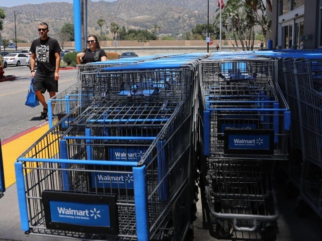 5月21日,顾客在美国加利福尼亚州旧金山湾区圣莱安德罗的一家沃尔玛超市购物。新华社记者 吴晓凌 摄