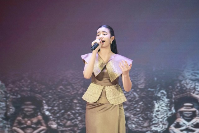 5月23日晚,2025“中柬旅游年”开幕式暨“水韵江苏-多彩高棉”专场文艺演出现场,图为柬埔寨王室成员诺罗敦·珍娜公主在表演节目。中青报·中青网记者 王岩/摄