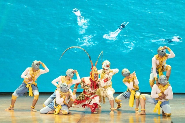 5月23日晚,2025“中柬旅游年”开幕式暨“水韵江苏-多彩高棉”专场文艺演出现场,中柬艺术家表演节目。中青报·中青网记者 王岩/摄