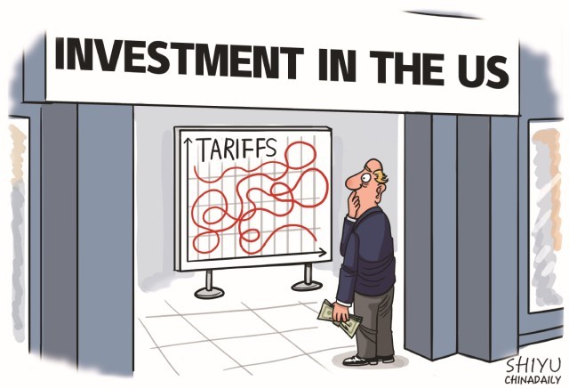 中国日报漫画:美国关税政策不确定性将拖累对美投资