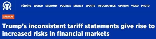 中国日报网5月28日电 土耳其阿纳多卢通讯社(Anadolu Ajans )27日的报道指出,美国政府在关税问题上前后不一的言论和难以预测的行动,导致全球金融市场风险加大、波动加剧,包括最近针对欧盟所作的决定。