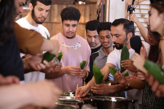 体验的高潮,由一阵浓烈奔放的牛油香气引领。循香步入洞子火锅馆,翻滚红汤中辣香、椒香、油香交融,瞬间引爆了所有人的味蕾。虽然火锅并非端午节特色餐饮,但已深刻入重庆人的饮食基因里。每到节假日,火锅是必须的。“太香了!辣得过瘾,越吃越香!”留学生们直呼痛快,在这份酣畅淋漓中感受着重庆饮食文化的热情与活力。