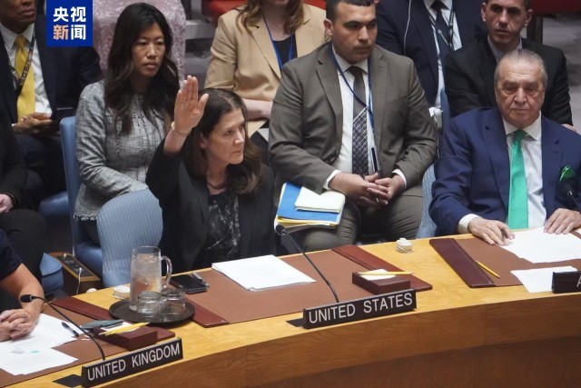 △当地时间6月4日下午,美国常驻联合国代表团临时代办谢伊投出否决票