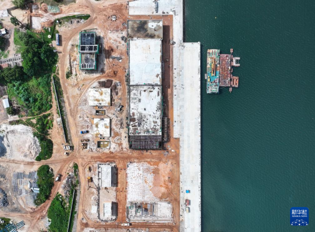 这是4月23日在坦桑尼亚东南部拍摄的基卢瓦渔港建设工地一隅(无人机照片)。新华社记者 李亚辉 摄