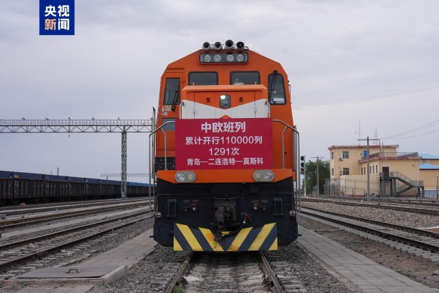 今天(12日)早晨,第11万列中欧班列从二连浩特铁路口岸出境,继续踏上前往莫斯科的国际之旅。此趟列车6月10日从山东青岛胶州站始发,经济南、北京、内蒙古乌兰察布等地,于昨晚22时20分抵达二连浩特铁路口岸。