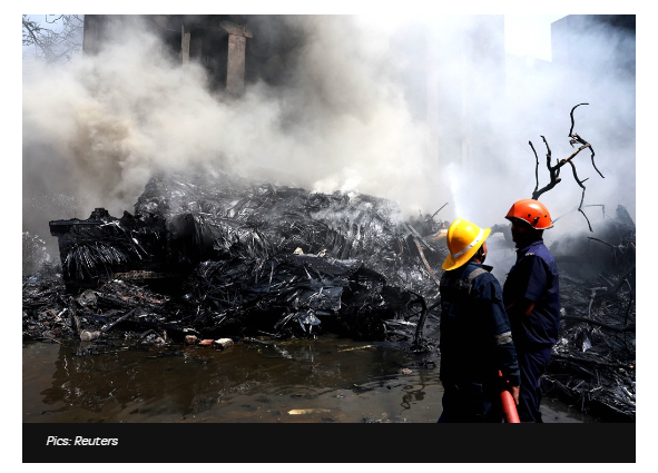 最新公布的机场监控画面显示,失事飞机在起飞后不久撞入机场旁的一栋建筑物内,现场燃起大火。据报道,这栋建筑物距离机场大概2公里。