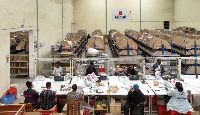 2023年7月28日,在肯尼亚姆洛隆戈,Kilimall员工在仓库内分拣货物。新华社记者 李亚辉 摄
