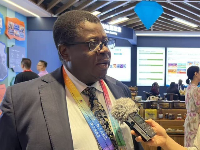 纳米比亚驻华使馆商务参赞高赛博接受记者采访